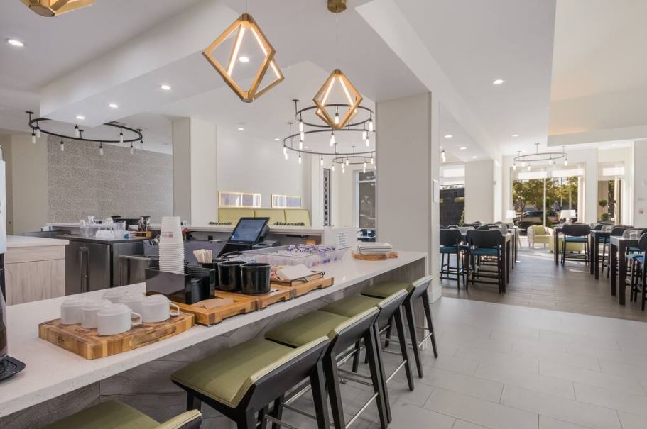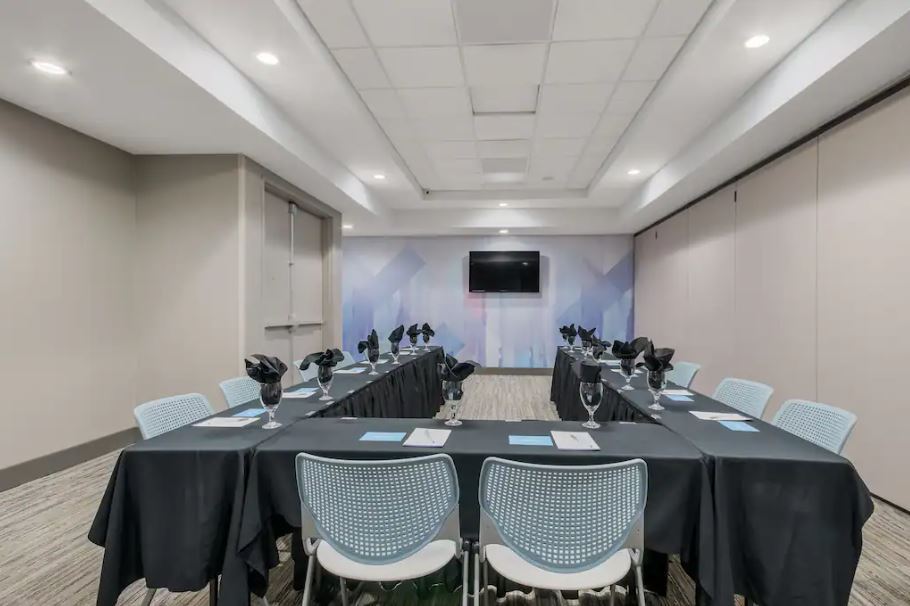 The space was completely ready at the time of our arrival, tables set for 100, we brought our own outside caterer and purchased a beverage cart from the hilton that was also ready to pour upon arrival. I would highly recommend this space for these types of gatherings. Parking was directly in front of the event space. TV's are available for slideshows etc.