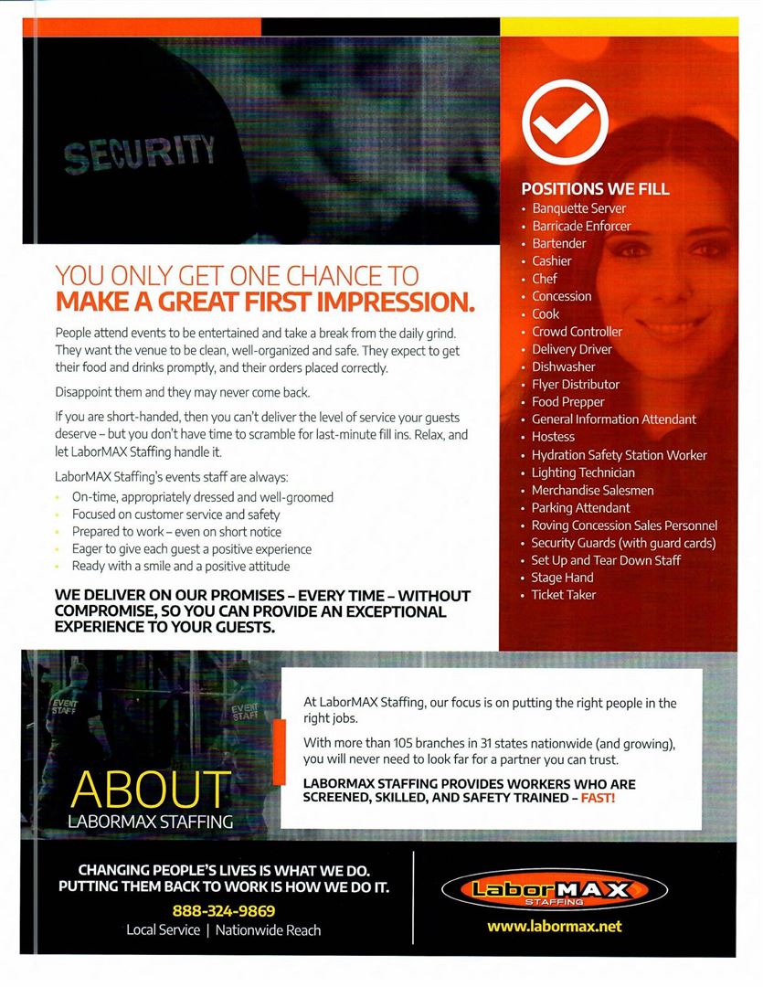 If you are short-handed, then you can't deliver the level of service your guests deserve- but you don't have time to scramble for last-minute fill ins. Relax, and let LaborMax Staffing handle it.