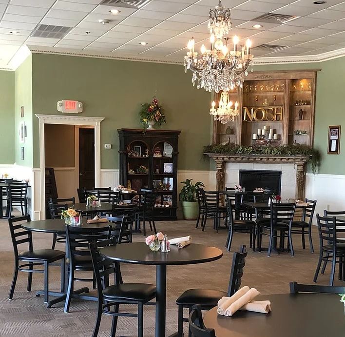 Nosh Restaurant features the Crystal Room, a private space complete with French doors to ensure privacy during your event. This beautiful space is available for your corporate meetings, bridal luncheons and rehearsal dinners, birthday parties, tea parties, dinner parties, baby showers and more with enough room to seat 36 people comfortably.
