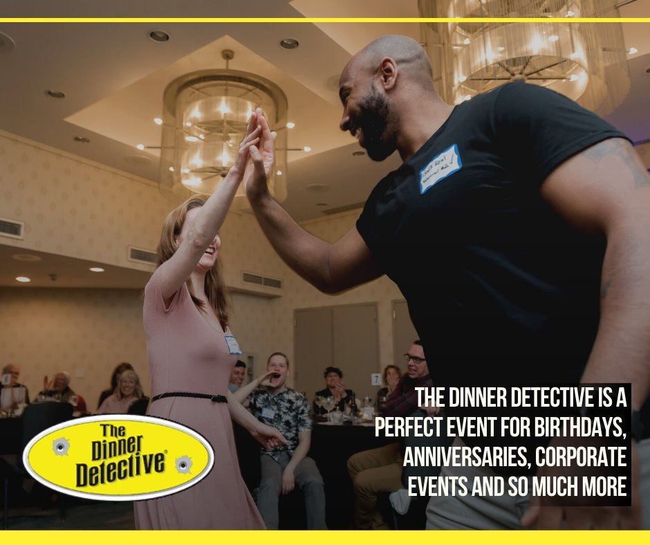 The Dinner Detective is the largest, award-winning, interactive murder mystery dinner show in the United States. Unlike other murder mystery dinner companies, our immensely popular shows are set in the present, with no cheesy costumes, no recited campy dialogue and no hokey characters. Instead of “Clue?” think “Saturday Night Live” meets “Law & Order.” Our cast is comprised of the best local comedians and improvisors who blend in with the crowd making everyone a potential suspect or victim. In many instances, guests are seated with the performers and don't even realize it until they die...the performers, that is! Our Detectives proceed to interrogate everyone and find clues as more people die. At the end of the night, prizes are awarded to the Top Sleuth who solves the crime.