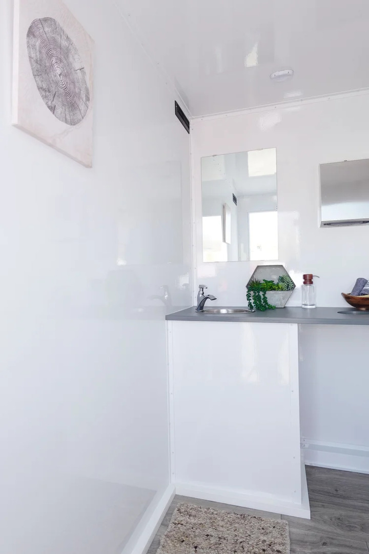 Spacious interiors, contemporary fixtures, flushing toilets, running water, climate control, and tasteful décor—every detail is designed to impress.