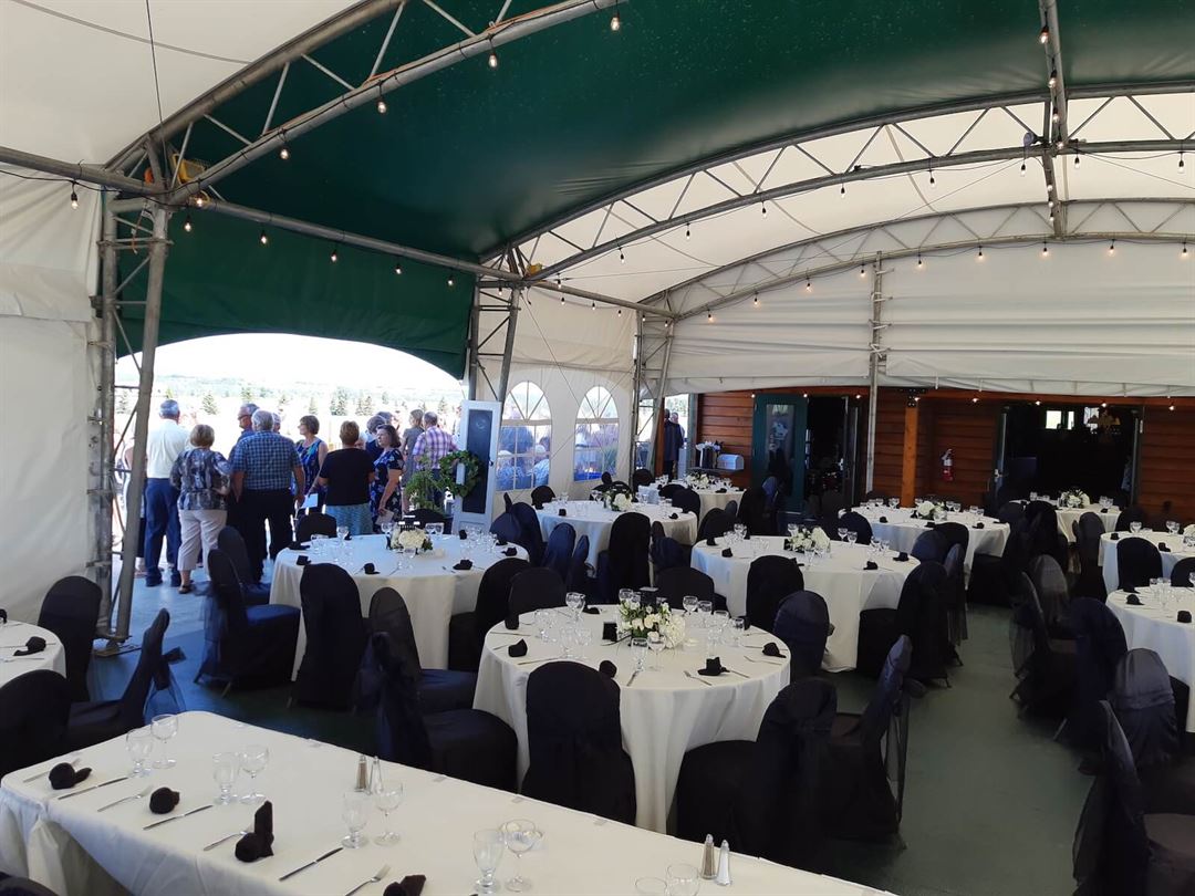 The facilities found at this polo club event venue include an amazing heritage clubhouse, adjacent tent that is a green living space alive with vines and plants, with picturesque views of the Rockies where you can hold an elegant wedding reception for up to 250 seated guests.