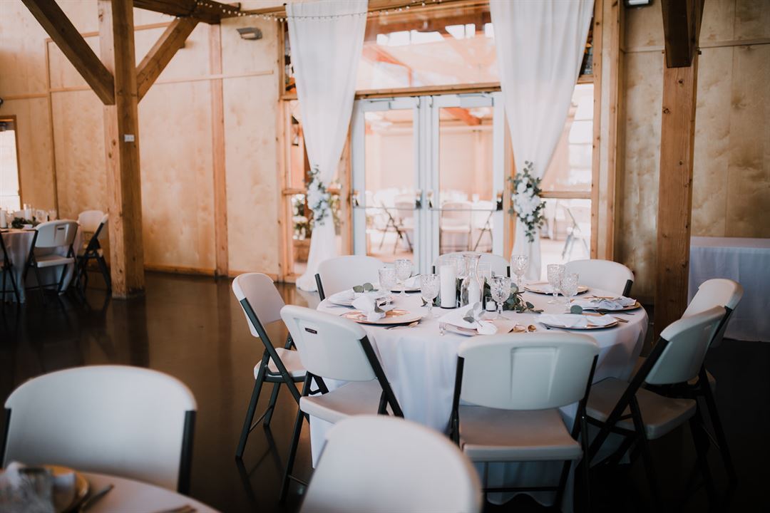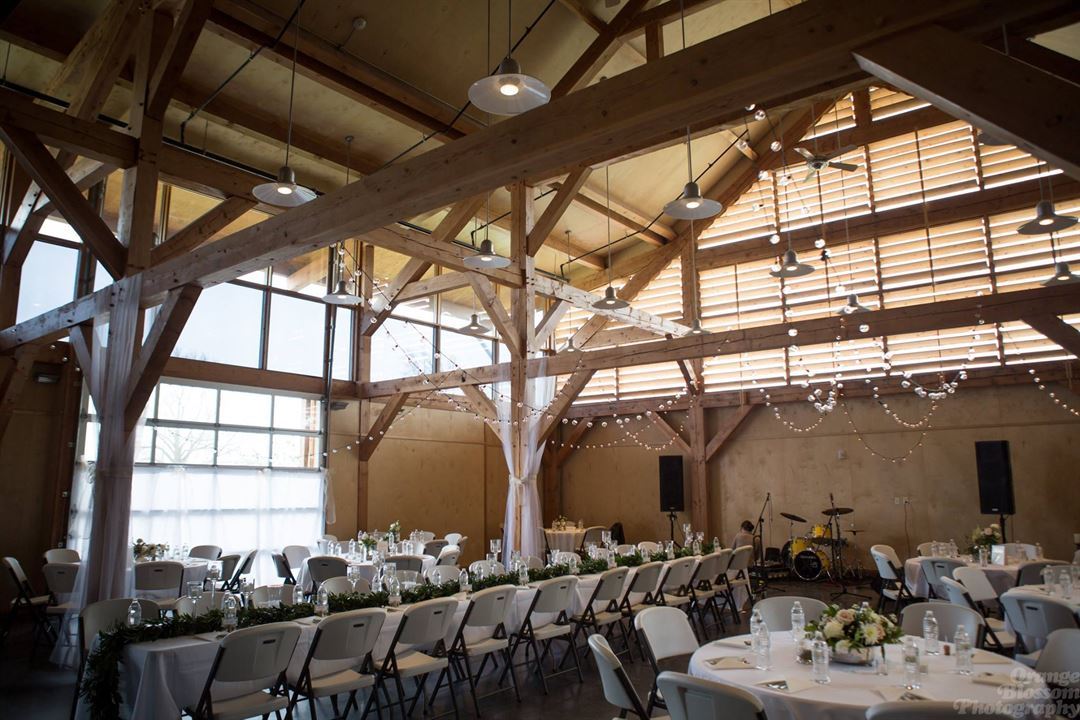 The Assembly Hall of the Heritage Center accommodates up to 150 guests for sit-down meal and the adjacent covered patio can be used for additional guest seating, dancing, ceremony or games.