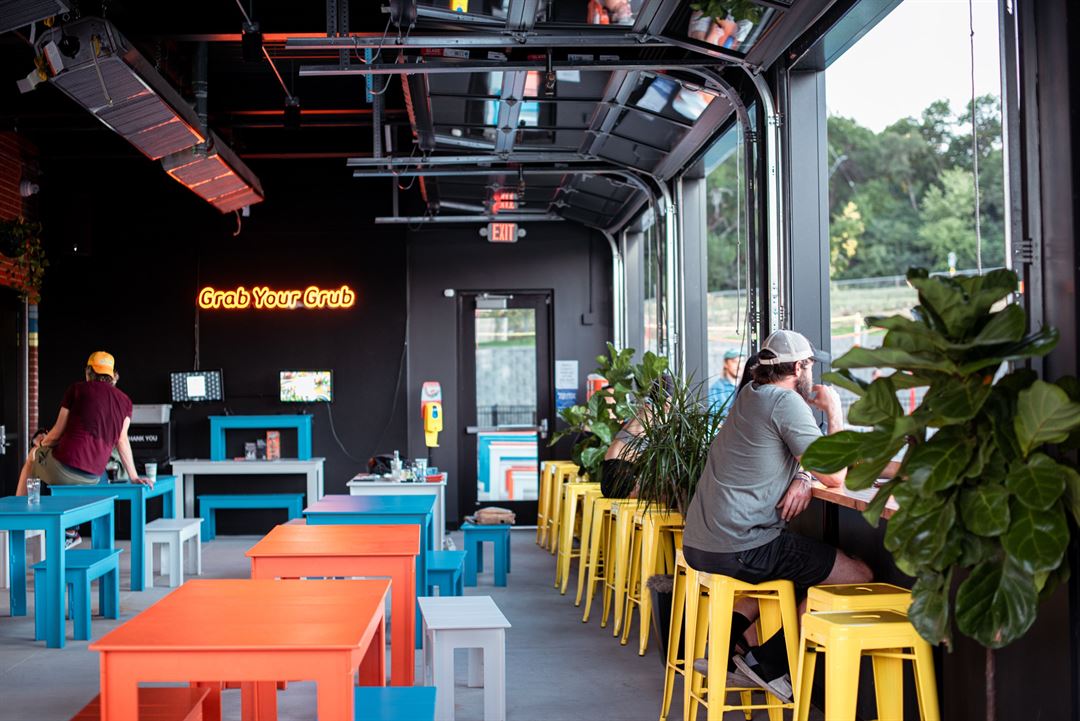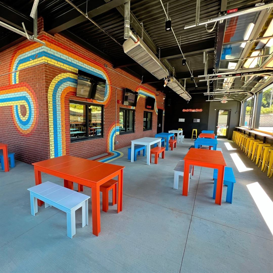 Our 4-season climate controlled patio is the perfect indoor-outdoor space with garage door windows for breezy summer days and overhead heaters for chilly fall nights.