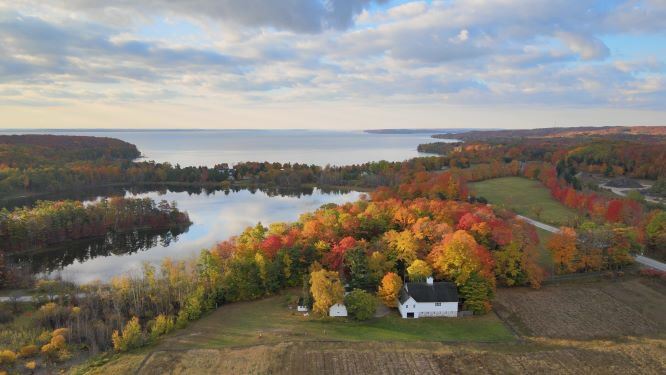 Reverberating with northern Michigan’s proud heritage of cherry production, Cherry Basket Farm's iconic white buildings and barns capture the charm of a time past, while also featuring modern updates.