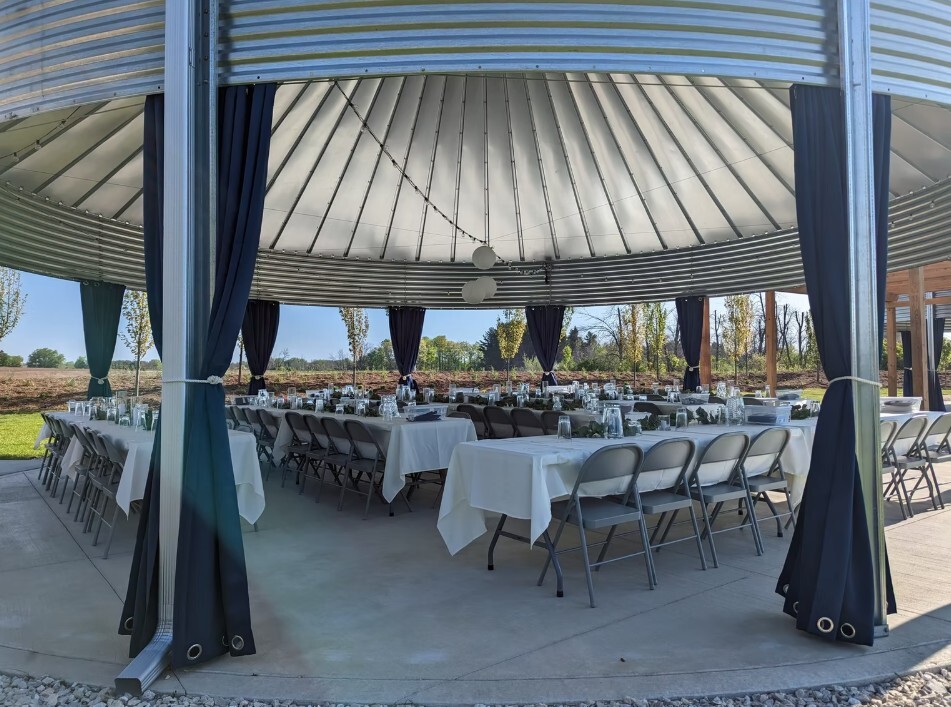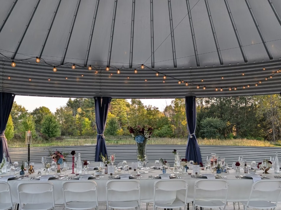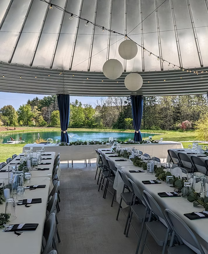 Blue Barn on the Green is a wedding and event venue like no other. Nestled on over five acres of lush green lawns surrounded by mature trees, the barn is a rustic yet elegant setting for your special day. The barn can accommodate up to 175 guests for your ceremony and reception, and the outdoor patio provides the perfect spot for cocktail hour.