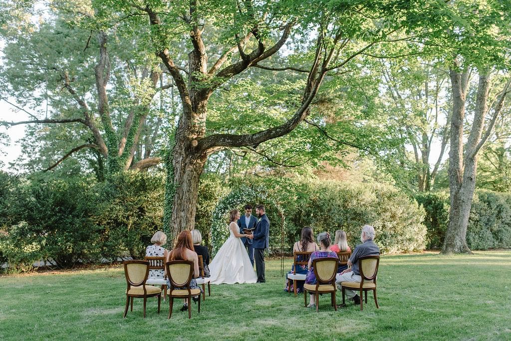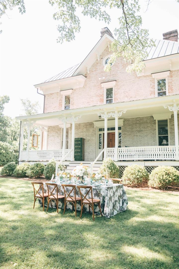 Boxwood Villa is a private wedding and event venue in Orange, VA. This enchanting venue can accommodate weddings of all kinds from gorgeous outdoor ceremonies to receptions hosted under an outdoor tent. Discover endless photo opportunities as you explore the grounds with its towering trees and delicate boxwoods.