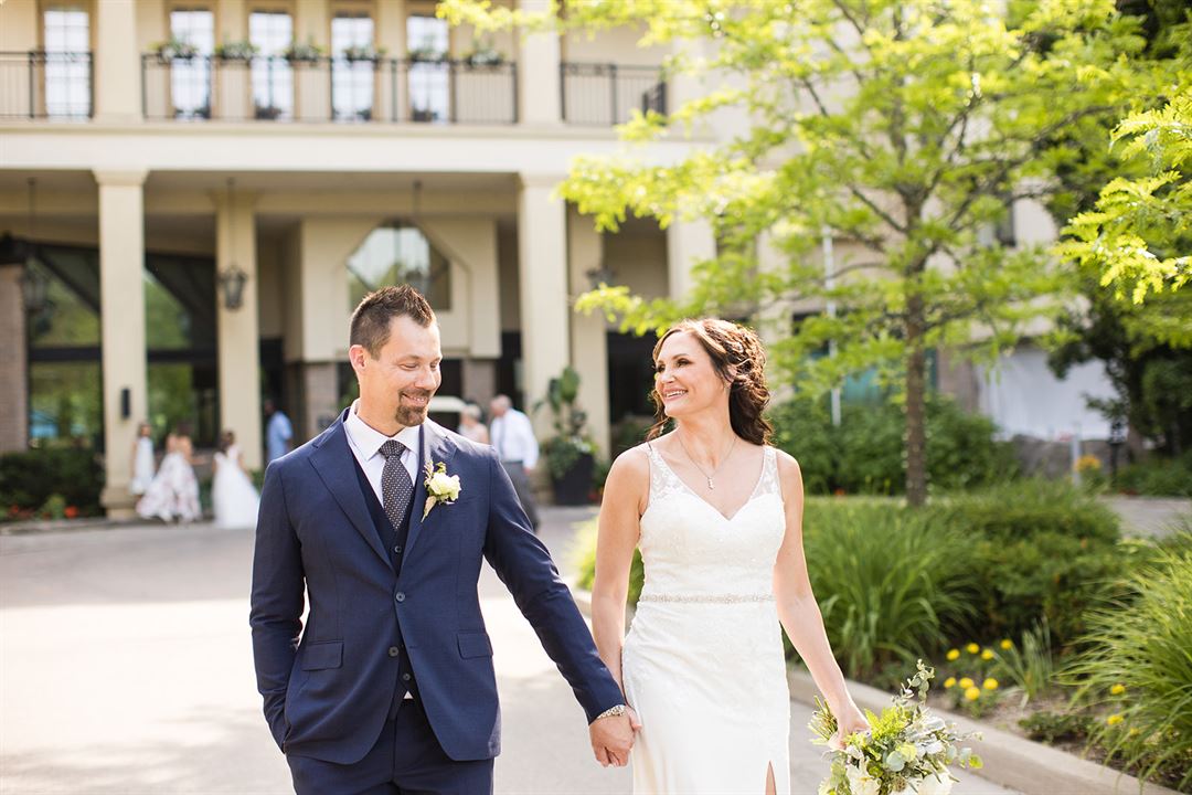 Hockley Valley Resort offers a wide variety of venues. Montclair Ballroom, comfortably hosting parties of up to 350 guests, features elegant chandeliers and high ceilings. This versatile venue can be laid out in different configurations, allowing couples to host their big day all in one place (or with a smaller space) for a simpler planning process. For a more intimate affair, the Aida Ballroom is a great choice with a capacity of up to 140 people. Its French doors invite ample natural light, and open out to a private patio that is ideal for an alfresco cocktail party. Restaurant 85 welcomes parties of 170 with ample room for dancing. Looking to say your vows outside? Enjoy fresh air and protection from the elements on the Montclair patio or the take in the picturesque scenery of the organic garden.