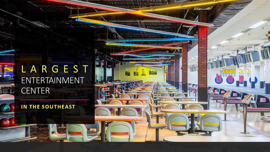 Located on the east side of Orlando near UCF, Boardwalk Bowl Entertainment Center is one of the largest entertainment centers in the Southeast. We have more than 100,000 square feet of space for fun and 80 lanes.