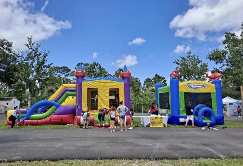 Our bounce house rentals in Orlando are great for kids and adults alike. If you are limited in space, this could be the perfect choice for you. Our average bounce house is right around 14' x 14' for the actual bouncing area, however, we do need to make sure we have enough clearance for the blower, the entrance and stakes where we secure in the ground. Low hanging trees and power lines could interfere with the inflatable therefore, please take that into consideration. Our Colorful Castle Bounce House is a perfect, gender neutral choice that would be great for any boy or girl birthday parties. Another popular rental choice is our Pink Princess Castle Bounce House for girl birthday parties that can be themed with Frozen, Unicorn, Mermaid, Disney Princess, LOL Surprise, Peppa Pig, Encanto, Minnie Mouse, Barbie, Moana, Trolls and so much more. These inflatable bounce houses has pop up obstacle pings inside to keep the kids entertained. Bounces houses may be limited in size but they are perfect for small backyard parties, daycare, church events, or even for a regular day to entertain the little ones.