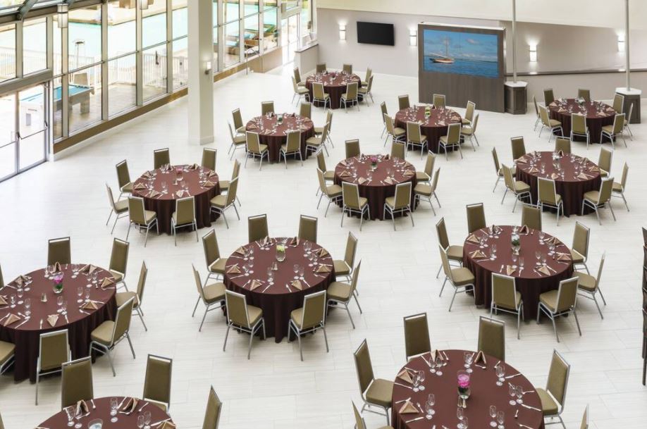 We have 11,000 sq. ft. of flexible event space including eight breakout rooms, five boardrooms, and the 7,350 sq. ft. Orlando Ballroom. A/V equipment and catering options are available.