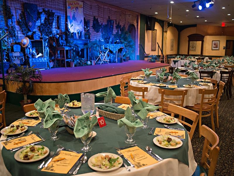 We offer a variety of pricing depending on how the space will be utilized. If you would like to offer breakfast, lunch, dinner, snacks or drinks to your attendees…we can do that as well! We have a full kitchen that can supply simple appetizers to full meals. Make it something really special and follow your meeting with a comedy mystery show and dinner!