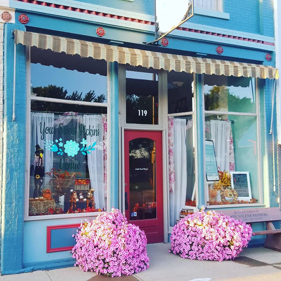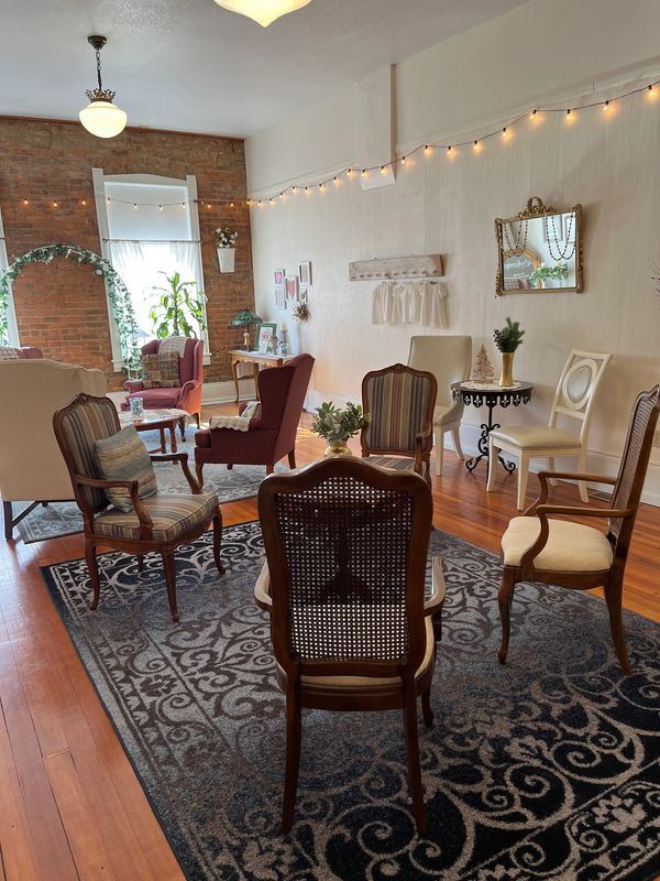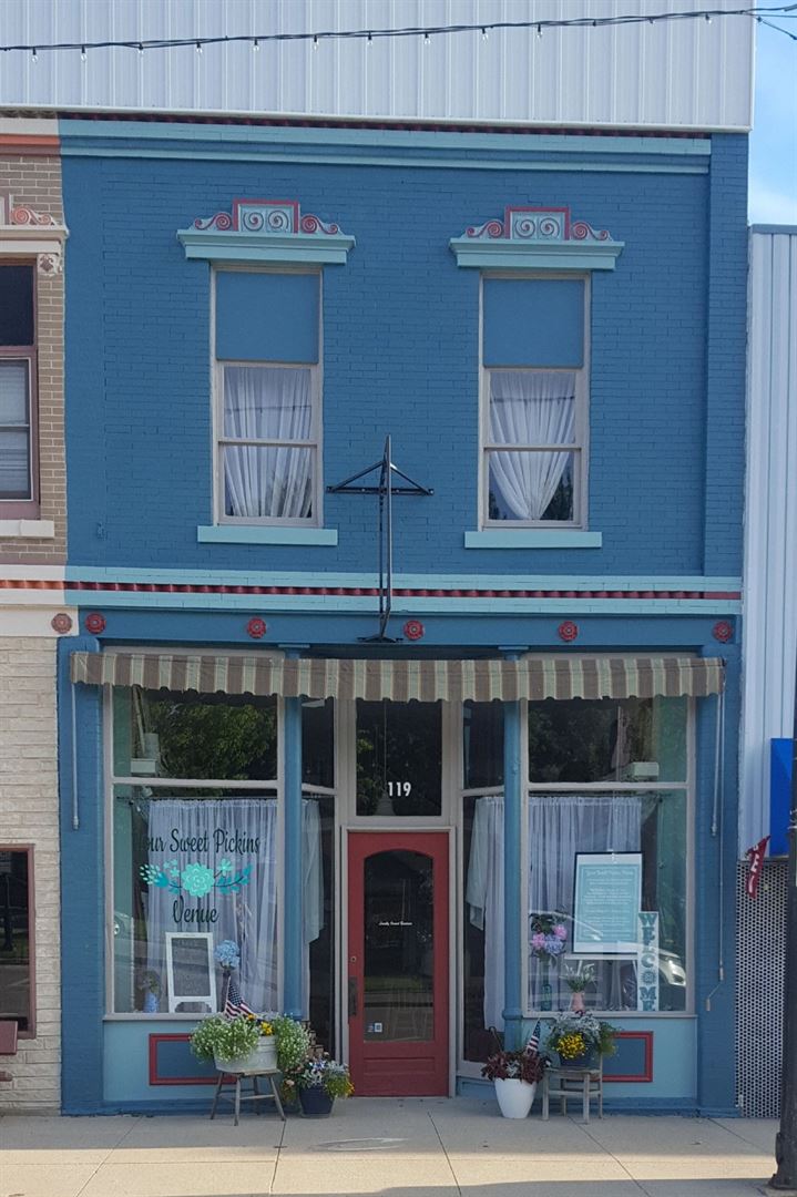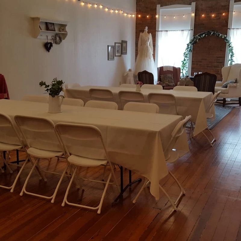 Your Sweet Pickins Venue is located in a timeless 2-story building built in 1920. This beautiful building features hardwood floors, a wooden staircase and a beautiful red brick wall located on the second level.