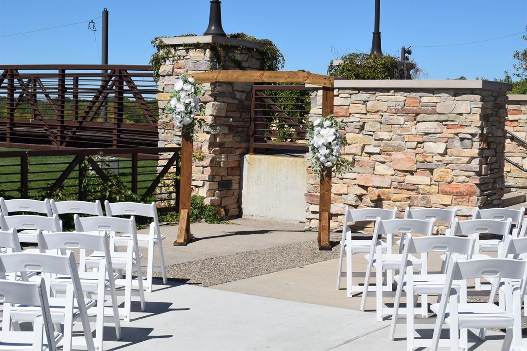 A blend of modern and rustic, the Elm Creek Chalet is a warm and inviting facility for your event. The chalet features a floor-to-ceiling stone fireplace built of timbers and fieldstone, a cathedral-style ceiling and expansive windows overlooking Elm Creek Park Reserve. A stone patio with ivy and lights in the evening allows a beautiful outdoor space for your guests' day or night.