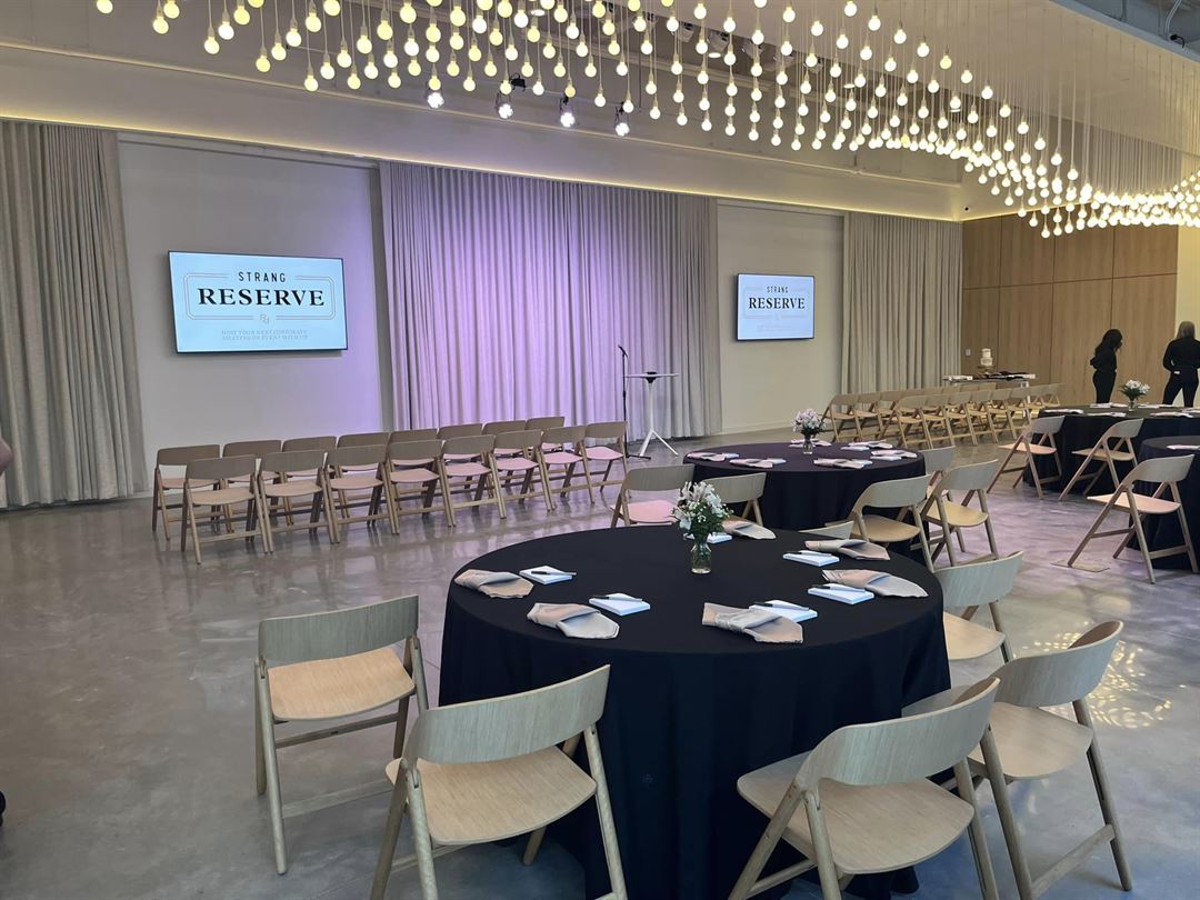 From weddings, corporate events, bridal and baby showers, graduation parties, chef dining experiences, philanthropic events, class reunions and every celebration in between, the Strang Reserve event space is perfect for guests to celebrate any and all events in a modern & beautifully designed elegant space fit for any occasion.
