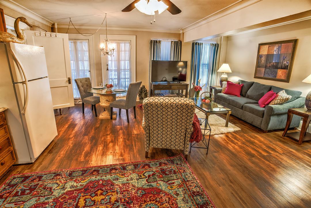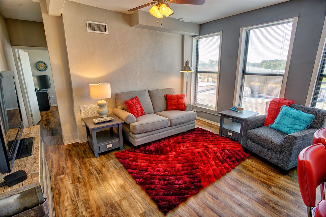 A lovely lobby meeting room is convertible from lobby seating area for hotel guests to various kinds of private meetings, dinners, receptions or parties. Meeting room is available up to 10:30 pm. Located next to Sparq Bar with Red Fire Grille restaurant. Restaurant may be available for additional events and may be able to cater the event. The Hotel offers 20 overnight or longterm stay suites .. all with kitchens and many balconies and courtyard locations. Once a Railroad Hotel and then a Railroad office, the theme is historic railroad. The Redlands Hotels is located close to the Texas State Railroad offering steam and deisel trips.