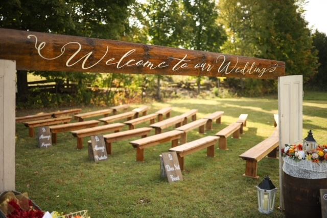 We offer many different decorating packages as well as our preferred vendors to assist you with all of your wedding needs. We offer a large barn and a three peak tent that is able to host 200 guests. There is plenty of parking, onsite washrooms and a bar.