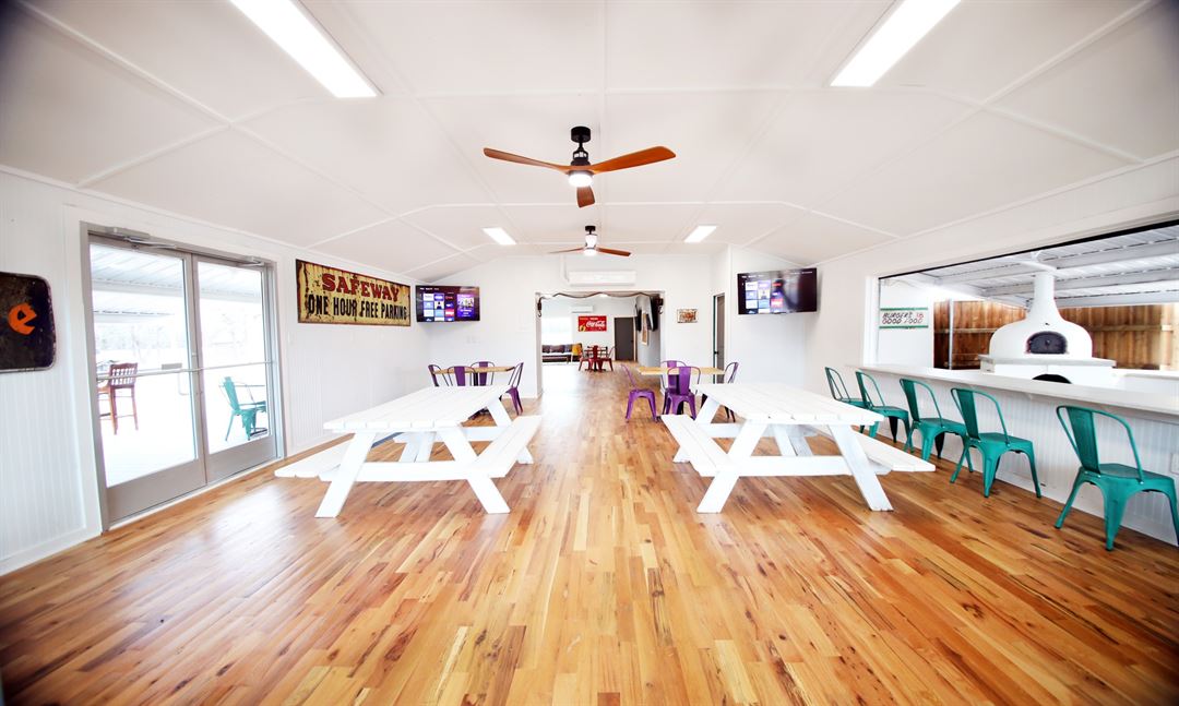 Lake Palo Pinto RV Park offers our beautiful newly renovated clubhouse for your next event rental. Located in the peaceful Palo Pinto Mountain countryside on the beautiful Lake Palo Pinto. This serene location makes for a perfect private party, meeting, benefit, or any other event you may be hosting. We offer tabletop seating to accommodate 80 people inside and outside. We also have additional seating for 25 people with our bar and adirondack chairs. The clubhouse store offers ice and bait available for purchase.