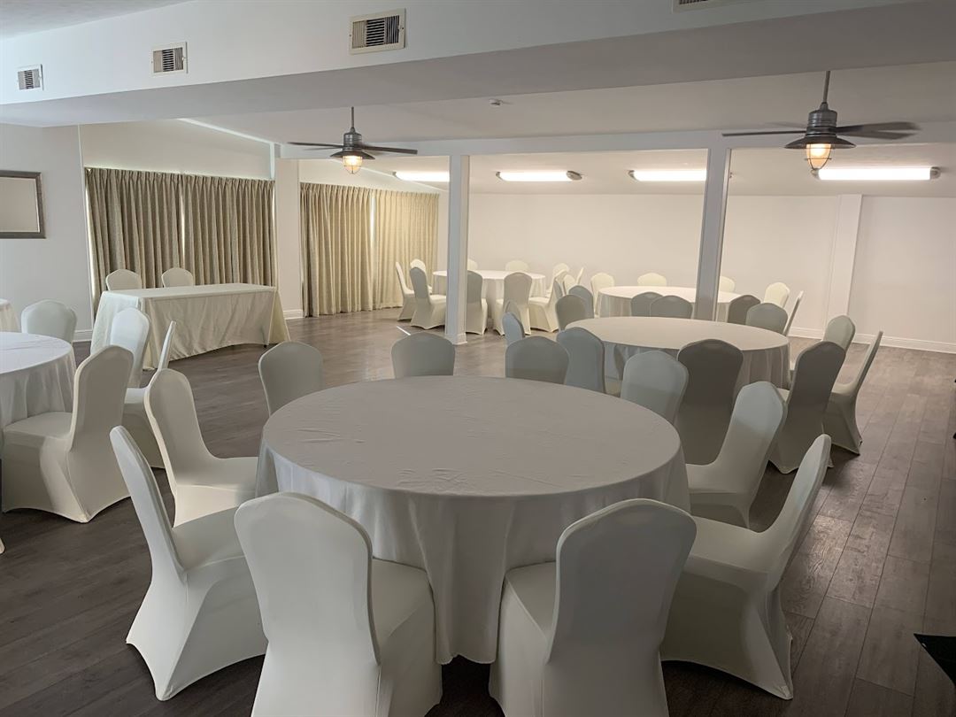 Looking for a banquet space indoors? The Beachcomber Retreat event room is right across the street that can seat up to 60 guests. Rentals will include banquet tables, chairs, gift & cake tables, and tables for catering. We will do the set-up, service, clean up and break down for you. We have catering partners for a variety of dining options. We will allow specialty cakes and desserts. Menus are available upon request. Additionally, the hotel offers bartending and cocktail services.