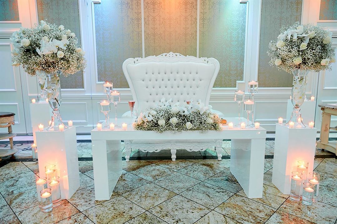 The color-lit waterfalls and unique rooftop terrace are perfect for photos & ceremonies, stunning 25-foot-heigh entryway, magnificent Italian marble, luxurious bathrooms and bridal suite, separate cocktail room and grand ballroom accommodating up to 500 guests with state-of-the-art lighting are just a few of the details that set The Terrace apart.