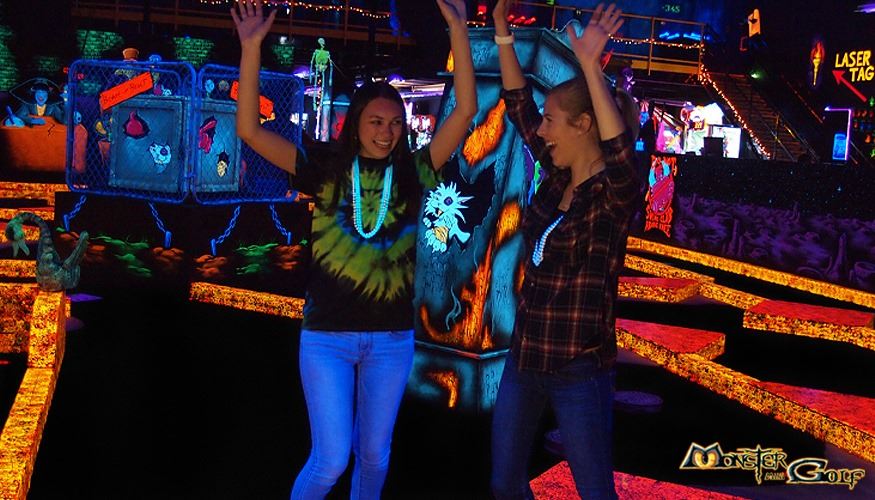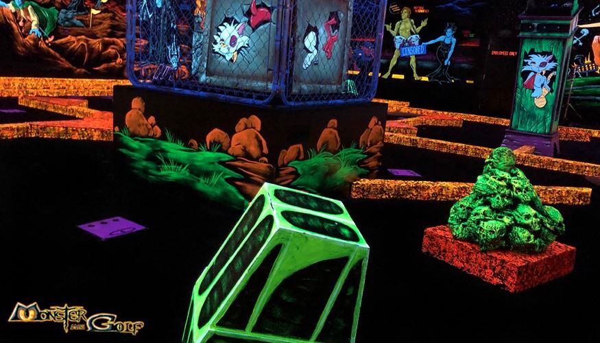 Monster Mini Golf is 18 holes of Indoor Glow-In-The-Dark miniature golf with 2 private party rooms and an arcade filled with redemption games for kids of all ages! It's not scary, it's fun! Check out the new Laser Maze!