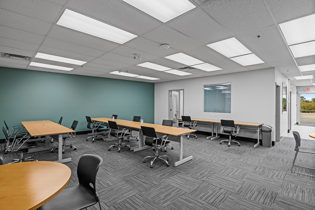 Spark House Coworking's Meeting Room is ideal for board meetings, team workshops, client presentations, or strategy sessions. Comfortably seating up to 14 people around tables, the room is equipped with a large TV for seamless presentations and video conferencing. With modern furnishings and a professional atmosphere, it's designed to support productive, collaborative gatherings.