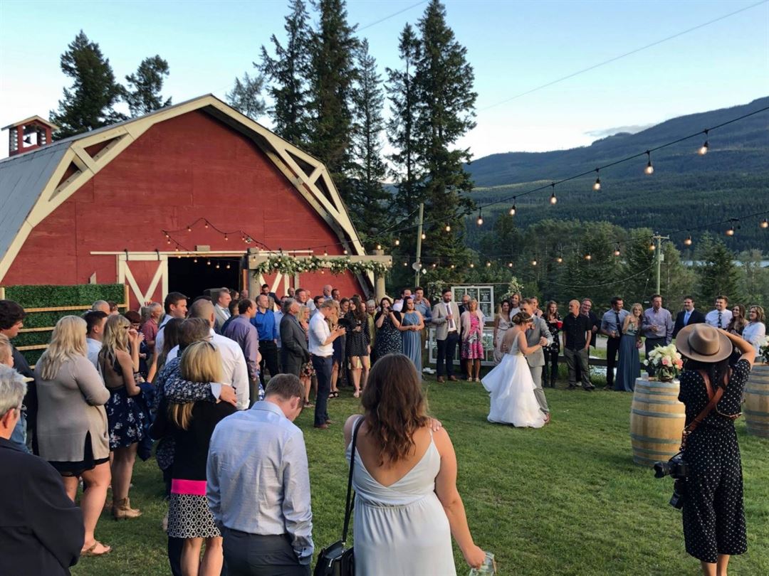 Rustic beauty only begins to describe the Red Barn at the Columbia Wetlands Outpost Lodge. Celebrate the start of your new life together at this amazing wedding venue. Offering indoor bar, a covered stage with theater style seating, and lush lawn with trickling stream and pond. Onsite accommodation for up to 14 people in the recently renovated Columbia Outpost Lodge is perfect for friends and family alike. Camping sites and dry camping sites accommodate you in your tent, RV or travel trailer, and our shuttle service transports guests safely to accommodation nearby. Photo opportunities are endless with wetlands and mountain back drops, a veil of hops and of course the classic Red Barn.