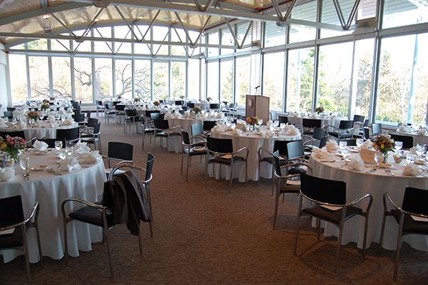 The Evergreen campus offers many unique and memorable spaces, including Hug Lounge and Refectory in the Tudor-style Humanities building anchored on the quad; The Linnane Alumni House featuring furnished, living room-style lounges and a spacious catering kitchen, perfect for corporate gatherings or intimate special events; the Alumni Memorial Chapel off the quad for religious celebrations and gatherings; McGuire Hall, a ballroom-style event space at the center of campus; the Fourth Floor Program Room, a versatile event space with floor to ceiling windows overlooking campus; and Reitz Arena, an athletic facility perfect for summer camps, bands, or large events for up to 3,000 people.