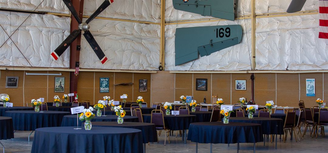 On 3/14/20, we had both a wedding ceremony and reception afterword at Hangar 1 on the property of Estrella Warbirds Museum. Planes were selectively moved into position to provide an awesome backdrop behind the bride and groom. Ceremony was held on the taxiway outside and seating for over 150 guests was set up. After the ceremony, the festivities continues into Hangar 1 for the reception which included great food, a DJ, decorations and dancing!