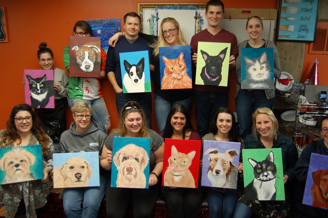 We offer step by step painting classes! We supply everything you need to create a one-of-a kind 16 x 20 masterpiece!