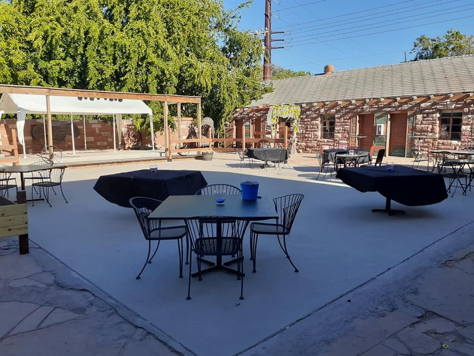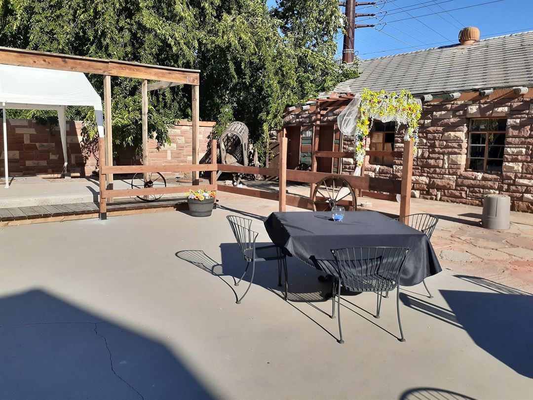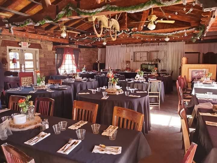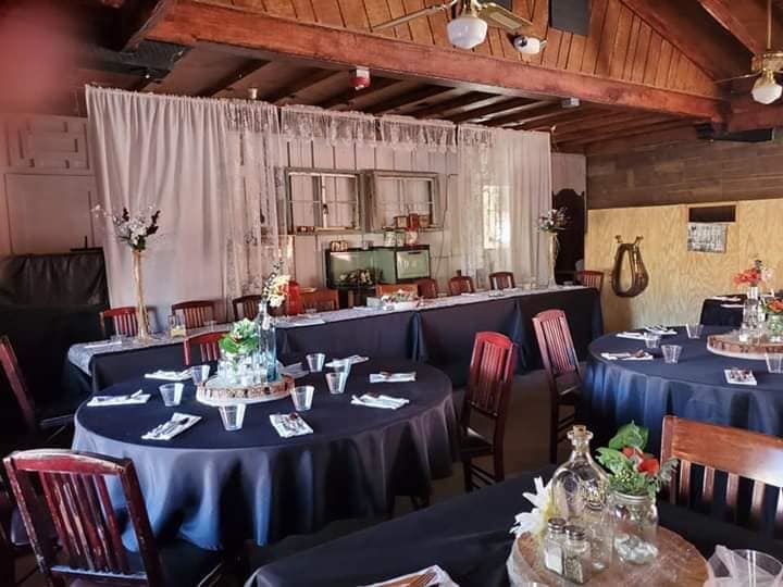 This 1928 Saloon features indoor and outdoor dining. Our beautiful dining room and patio is perfect of a rustic country wedding.