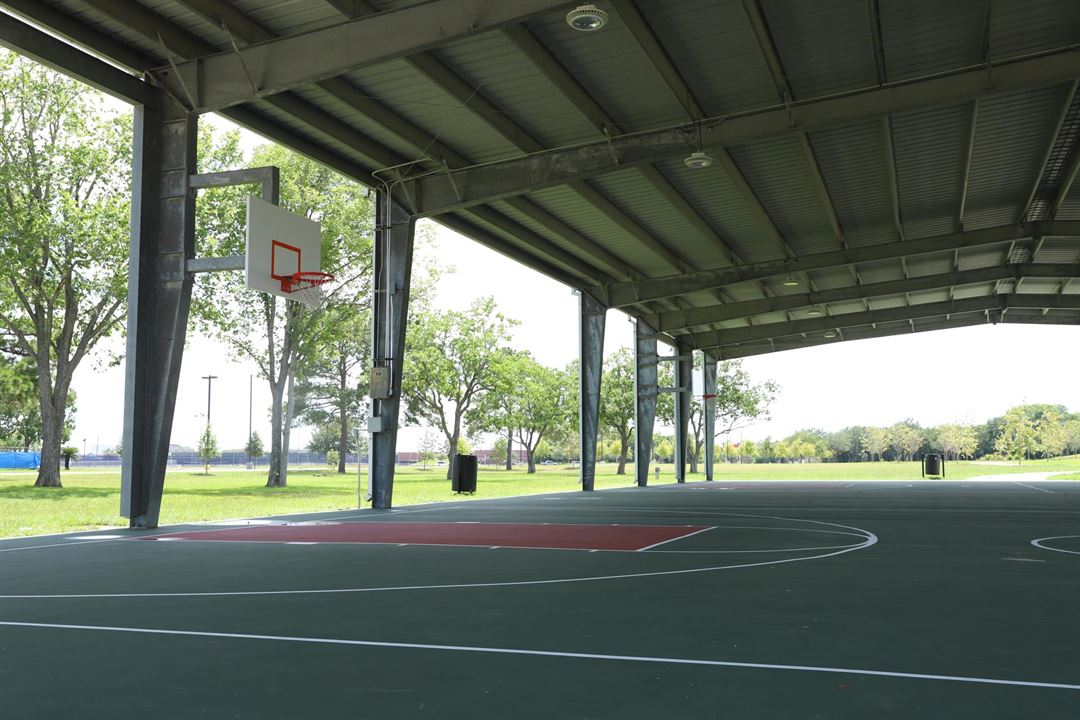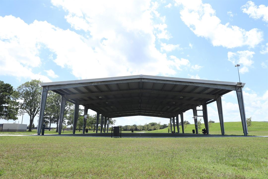 Featuring a fully-equipped stage with front-of-house audio and additional lighting rigs, along with an amphitheater-style hill, it's perfect for concerts and theater productions. The park’s large pavilion, which doubles as a basketball court, adds versatility for all kinds of activities.