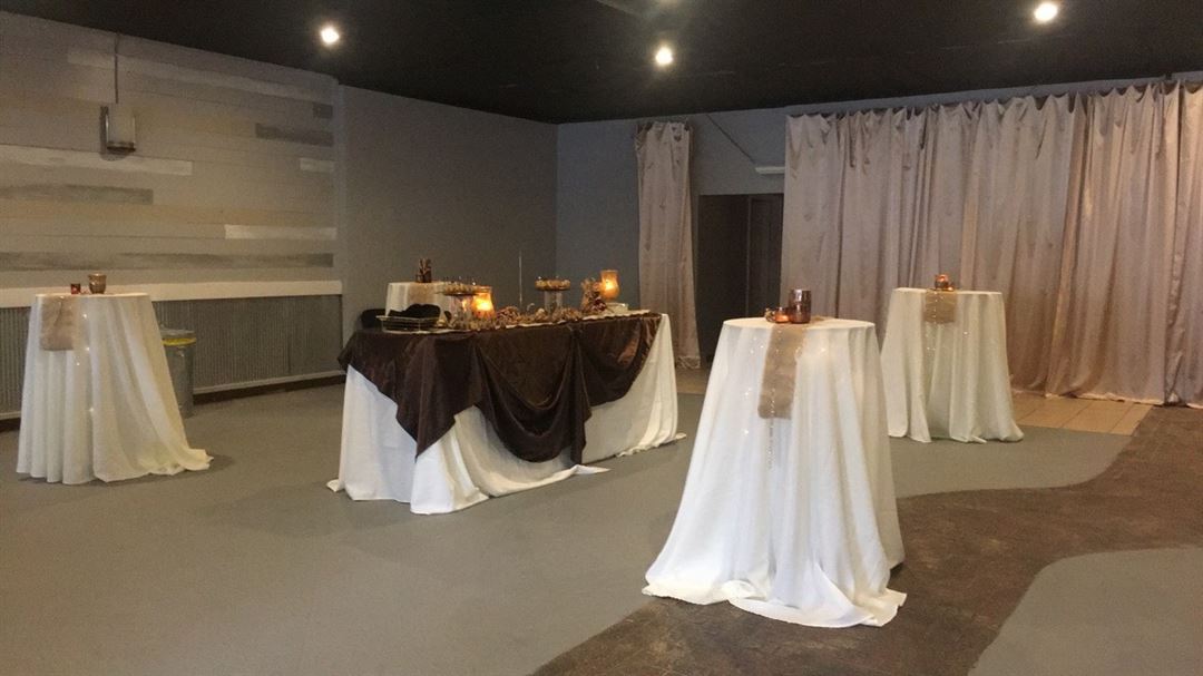 Bathrooms, tables, chairs, various decor items, and behind-the scenes kitchen space are all available for your use as well.