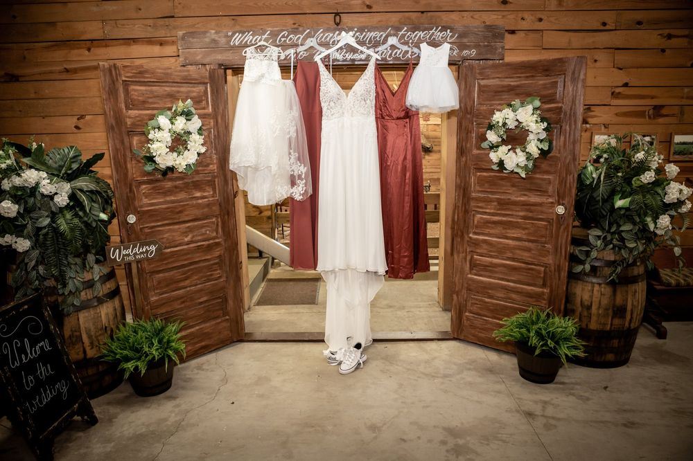 1. Rustic Brown Entrance Doors with "What God Joins Together" sign