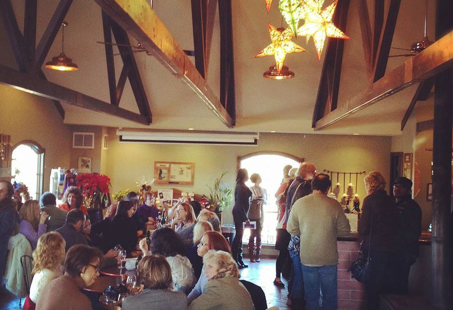 Our rustic setting has also proven popular for social gatherings, including bridal showers, baby showers, weddings, family reunions and private parties. We have both outdoor and indoor spaces for your events. We can accommodate an unlimited number of people for outdoor events. Our indoor event space, located adjacent to our winery tasting room, features slate floors, a large copper-top bar, stone and stucco walls, chandeliers, a stage/dance floor, and a rustic brick pizza oven. The room holds 98 people seated, and with its stage and overhead projection system, is an ideal location for business meetings.