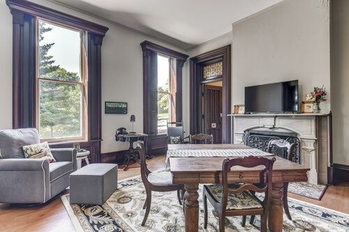 Three Pines is a historic mansion in Petersburg, Illinois, a farming community with a bustling square nestled on the banks of the Sangamon River. Inspired by the heritage of the Midwest, the property has eight suites and a rustic barn. Three Pines offers a modern take on staying in your “hometown” for your next retreat, wedding, reunion, or weekend away.