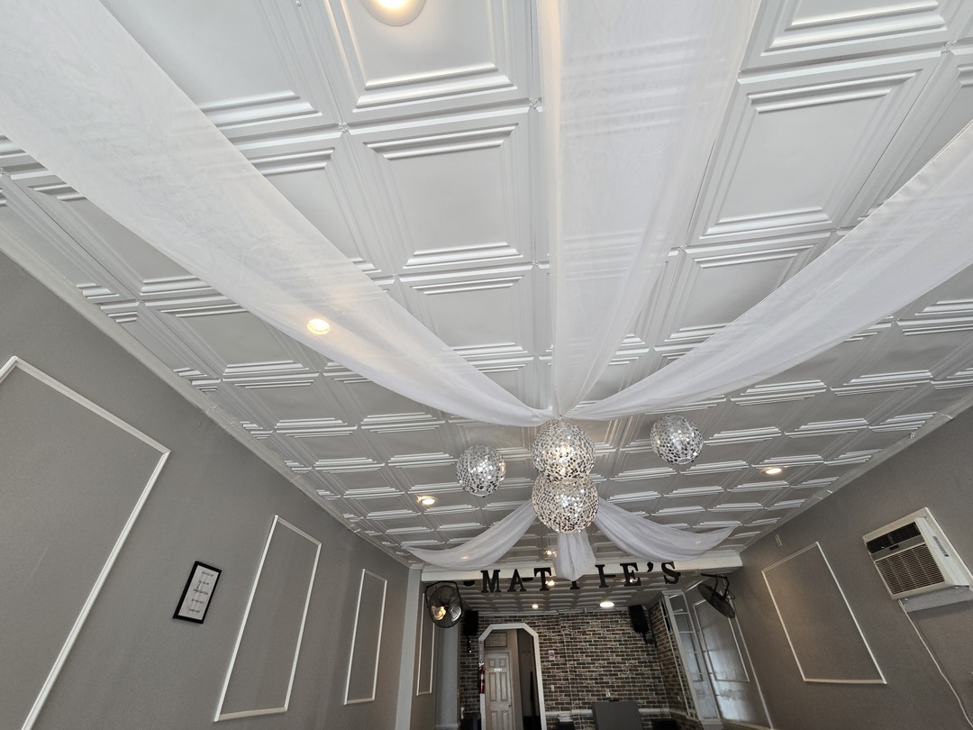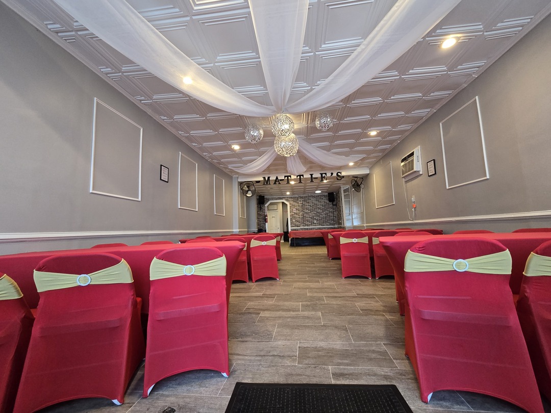 Mattie's Place has built in lighting and sound. Additional services provided; catering, videography, and decor. Convenient off street parking and a covered outdoor seating area.