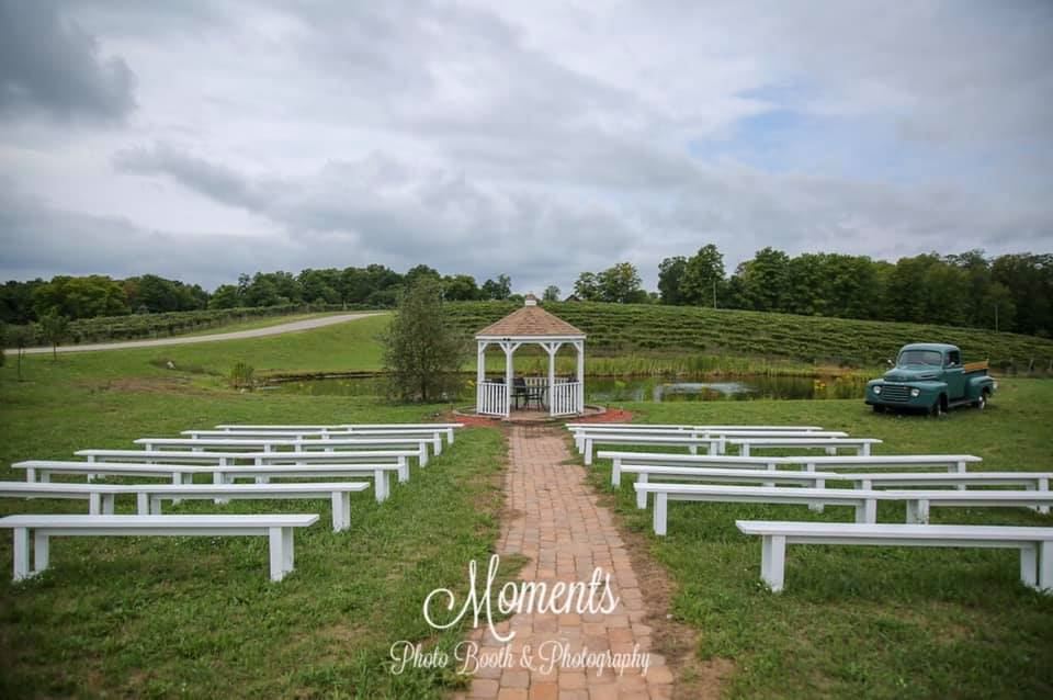 Mackinaw Trail Winery is nestled in the beautiful rolling hills of Northern Michigan. Sitting on 30 acres of Michigan’s most beautiful region, the winery is a perfect location for any wedding or event. Our wedding package includes a 40×80 Pavilion with bridal preparation room, restrooms, catering preparation room, fireplace, panoramic view of the vineyard, a gazebo located down by the pond, patio, access to wine and beer, and parking. This is the perfect event space for any wedding, birthday party, or other private event.