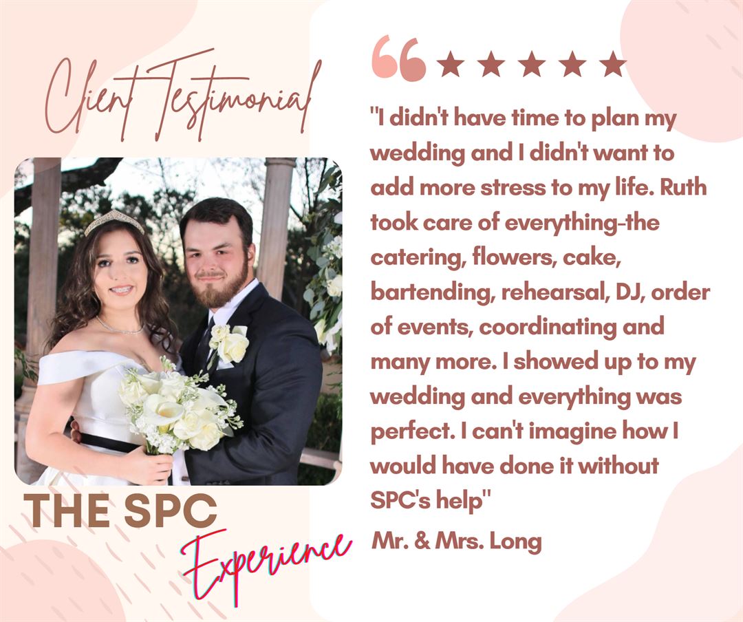 Welcome to The SPC Experience—your go-to wedding and event specialists serving Austin, Texas, and beyond. In the ever-changing world of event management, creative planning is key, and at SPC Wedding & Event Mgt, we’ve made it our mission. Our team draws inspiration from your unique stories, staying ahead of trends and concerns to ensure every detail is flawlessly executed. We aim to make you feel like a guest at your own event.