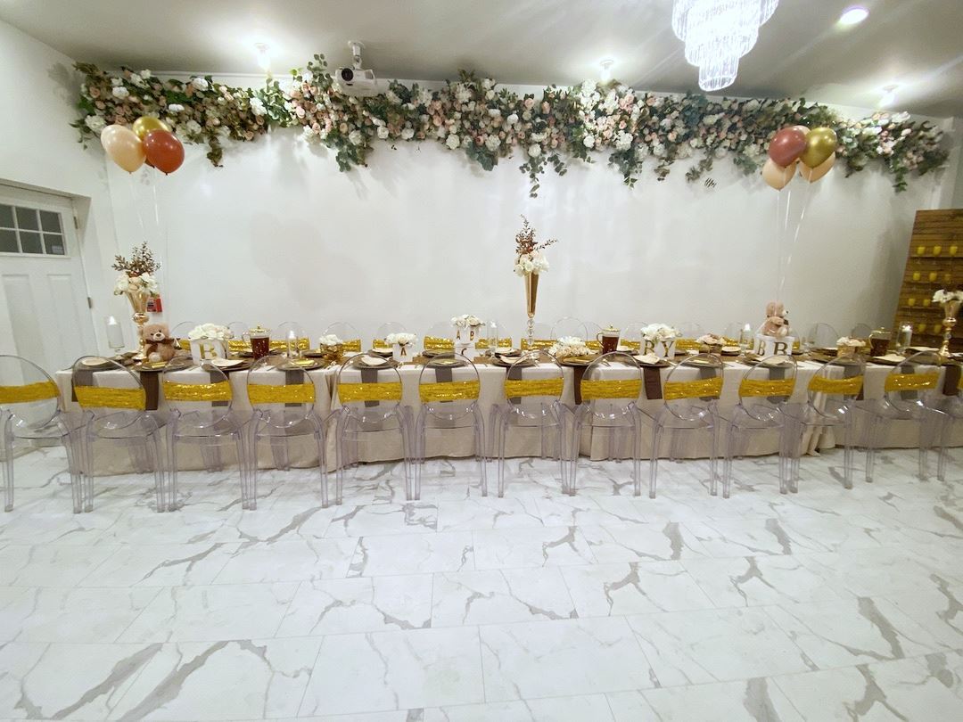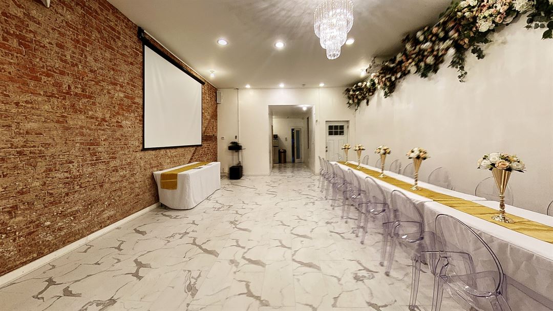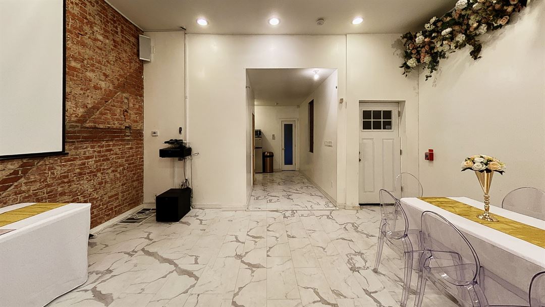 Her Space is an upscale event space perfect for intimate events. Featuring marble floors, an exposed brick wall, and a permanent flower installation, Her Space has the luxury feminine aesthetic most women spend thousands trying to create for their events. Our space is 850 sq feet and perfect for birthday dinners, baby showers, classes, pop up shops, and much more.