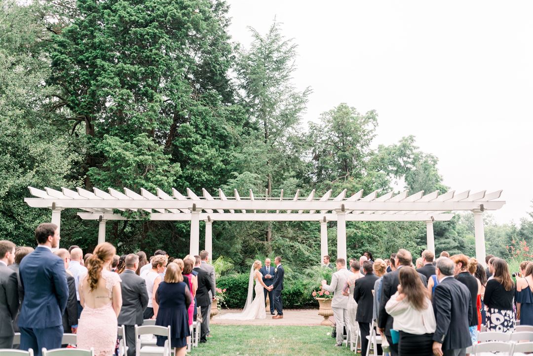 The Knowlton Mansion features two beautiful Ceremony Locations. Nestled amongst English boxwoods, outdoor ceremonies take place beneath the pergola. Alternately, an indoor ceremony can be accommodated on the upper level of our Conservatory, under the expansive glass skylights.