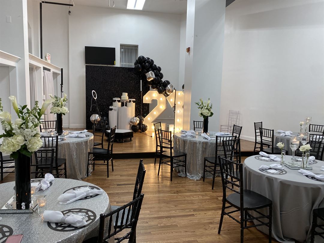 Sorella's Events is a 1200 sq. ft venue with high ceilings, large windows and great natural lighting. It can occupy 50 or more guests (depending on the type of event). We provide tables & chairs for 50 guests, and cocktail tables. The venue offers surround sound system, Bluetooth, Firestick TV, Projector, and Up-lighting, if needed. We also offer a decor package to help ease the stress of event planning.