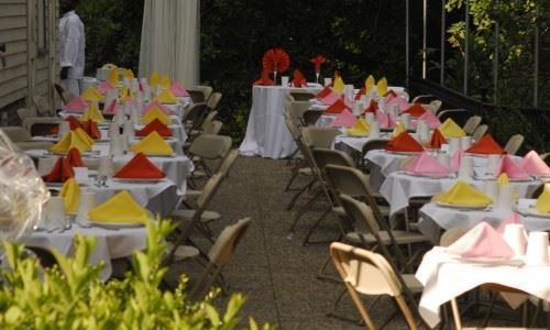 While the mansion itself does not accommodate events it makes for a beautiful backdrop to our stunning tent which can hold 300 people for a sit down affair and features a 3-sided bar, side walls with cathedral windows and b-lighting. The Ridgeland barn can accommodate up to 80 guests for theater-style programs or up to 60 guests for banquets. Also, the Secret Garden is the perfect setting for a ceremony or intimate rehearsal dinner. Addtionally, clients have a beautiful choice of Bridal/ Groom Suites available for their use in the mansion, as well as a sweet sitting room for close family. For your convenience there is also an abundance of parking. TLC's Four Weddings noted Ridgeland Mansion as "the perfect space for a romantic wedding", and It's All About the Details bridal magazine said Ridgeland Mansion "is a hidden gem".
