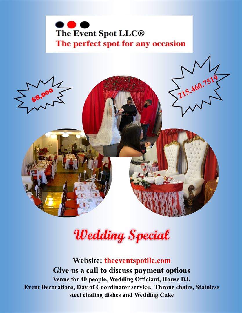 In addition, we offer the following services: Event Planning, Event Decorating, Day of Coordinator & Wedding Officiant services in PA, DE & NJ. When you call inquire about these services