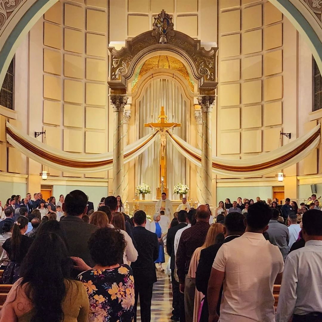 Hosted 97 guests for a happy memorial event. It looked lovely with the round tables with navy blue cloths. Had several high tables.
