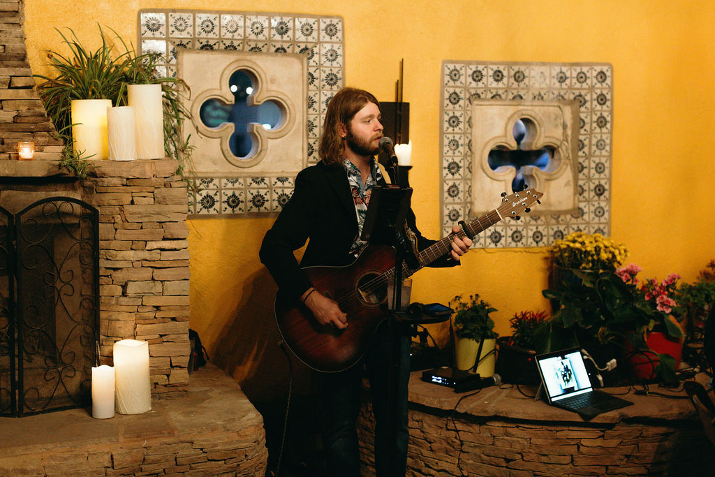 El Encanto in Cave Creek offers the South Patio, a covered outdoor area that features Misson-style architectural touches. This space can host ceremonies and receptions of up to 120 guests. Here, you can enjoy dining and dancing with a blend of natural light and the soft glow of hanging pendants. A fireplace also adds to the comfort of the setting, providing warmth and a sense of romance.