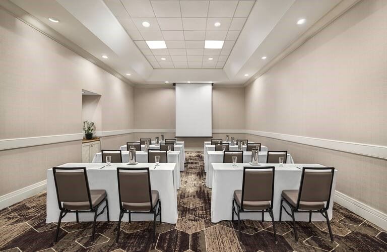 At Embassy Suites Hotels, we know exactly what it takes to help you create spectacular events. With 2,700 total square feet of meeting and event space for small meetings, weddings, receptions, and reunions up to 80 people, you can count on our planning professionals to help you coordinate every aspect of your function. We can help you with all catering, audio/visual and IT/HSIA needs. Our boardrooms, atriums and event spaces are all flexible enough to accommodate all sizes and types of functions.