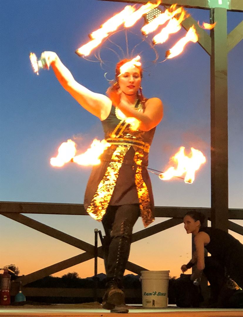 Fire performing is dangerous yet we actually make it quite safe with our skill and experience. In addition each performer carries insurance that covers the venue up to $1M per occurrence and $2,000 General Aggregate. An onsite safety assistant is at every show to maintain performer, audience, and venue safety.