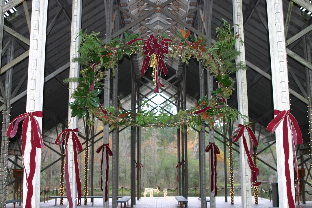 For your wedding day, The Crosby Arboretum offers two options The Pincecote Pavilion or The Rosen Pavilion. Option 1: This open building rests on the base of earth-tied brick, with wooden beams and panelling that provide shelter. This all-wood structure is built from indigenous materials and native pine. Surrounded by earth, water, and trees, it is a truly enchanting setting in which to exchange vows and dance the night away with loved ones by your side. Couples are welcome to arrange their own setup and decor, tailoring the space to match their unique event needs. Option 2: Is equally as beautiful but will be taylored to a smaller intimate setting. The venue offers PA systems and Bluetooth speaker rentals, as well as the use of its limo golf cart for moving around the property and photography.