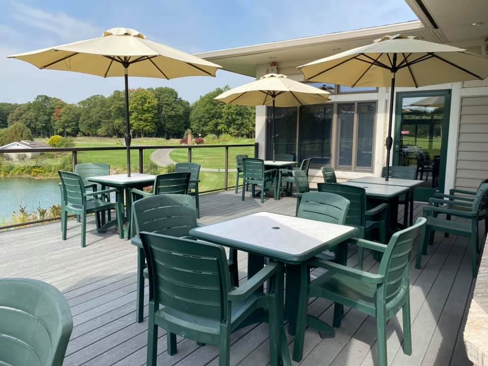 Outdoor ceremony in a natural setting with views of our stunning course and overlooking our pond